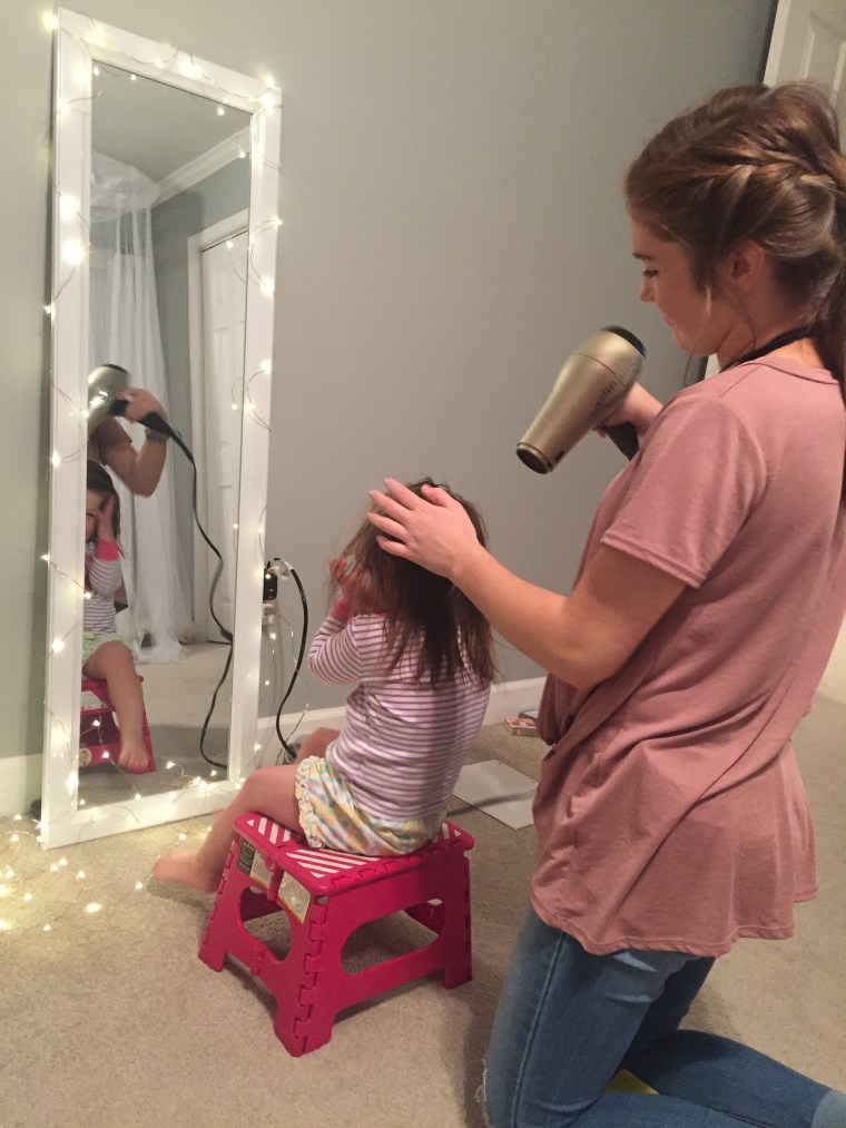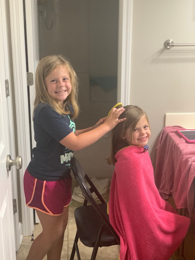 By the time Grace came into my life, my head was no longer as tender as it had been when I was a child. Grace was also pretty good at doing her own hair- one of the possible benefits of having a single dad for a while. One of our favorite things to do together was to play “beauty shop”! After I washed my hair, she loved to dry and style it and I loved to do her hair too! Our “beauty shop” time was a bonding experience for us. We would talk about anything and everything while relaxing in the warmth of the hair dryer and gentle sensation of someone playing with your hair. We still do this when she is home from school. It makes me smile just thinking about it. So of course, I couldn’t wait for my other girls to get big enough for us to play “beauty shop” together.