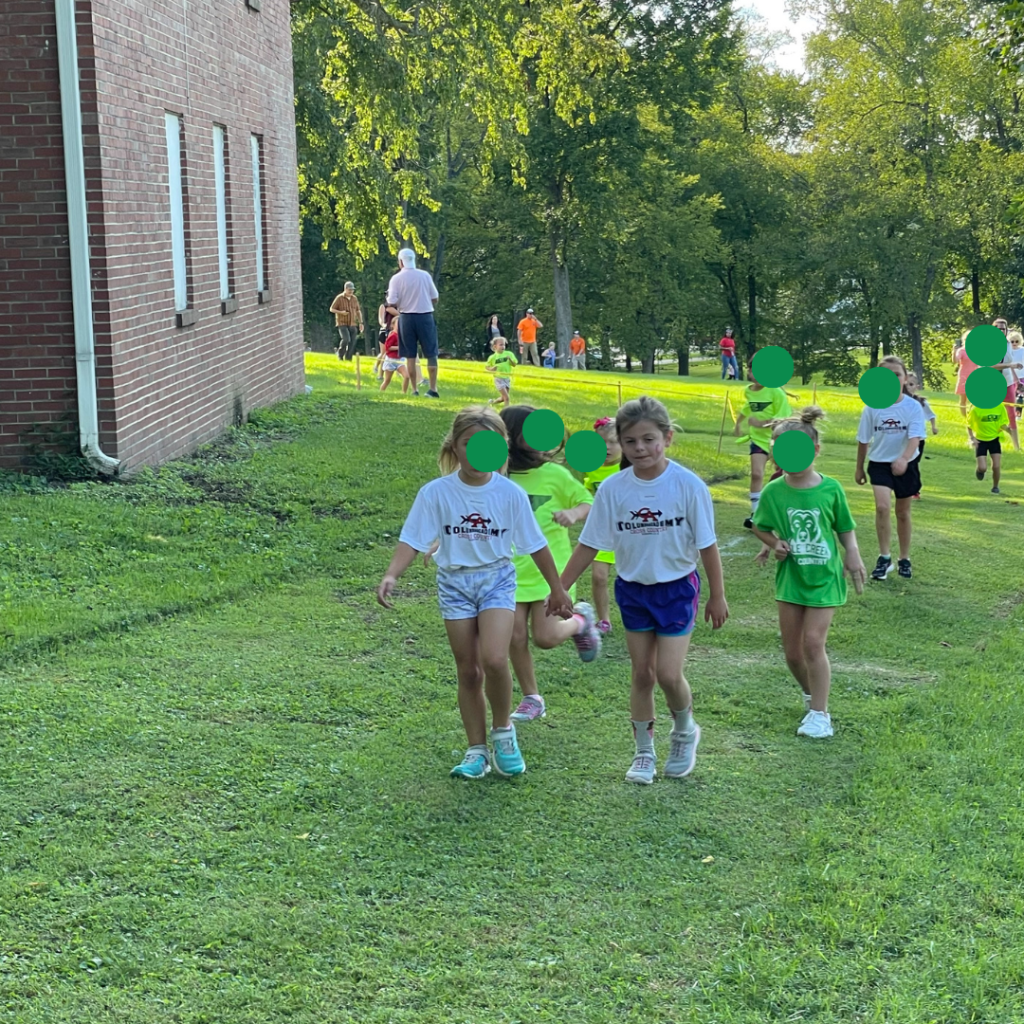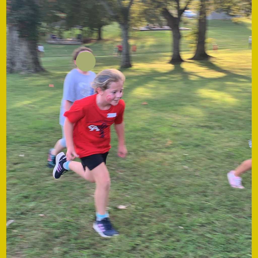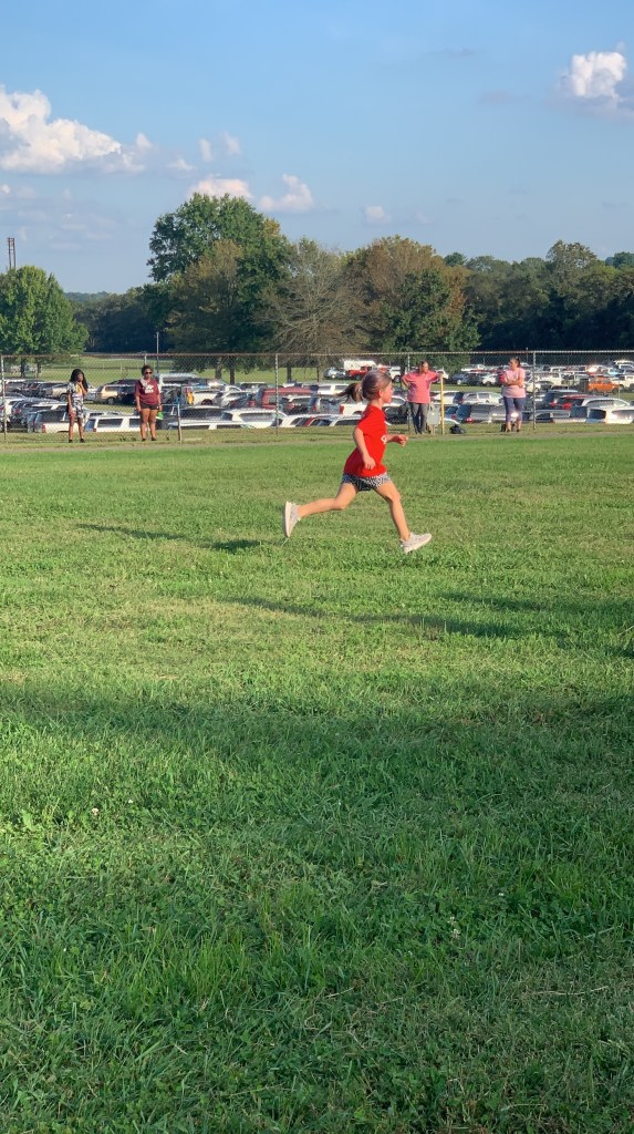 Bella Kate didn’t run cross country that first year but after seeing the after season party, she decided she wanted to run her 3rd grade year. That just so happened to be the year that Carly started Kindergarten and Carly has ALWAYS tried to keep up with her big sister. So, of course, she wanted to run too.